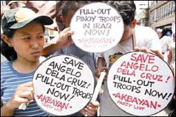 وصلت زوجة الرهينة الفيليبيني انجيلو دي لا كروز المحتجز في العراق وشقيقه امس الاثنين الى الاردن ووجها نداء للافراج عنه ، حسب ما اعلن دبلوماسي في السفار.........