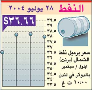 * لندن - اندرو ميتشيل (رويترز) : سجلت أسعار النفط أعلى مستويات لها فيما لا يقل عن 21 عاما امس الاربعاء بعد ان أمرت السلطات شركة النفط الروسية العملاقة يوكوس بالكف عن بيع النفط وهو ما.........