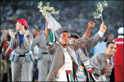 أغصان الزيتون تتقدم وفد فلسطين داعية للسلام في افتتاح أوليمبياد أثينا