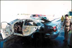 احتراق كامري بعد ارتطامها بسيارة اخري