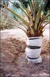 وتتمثل طريقة التعامل مع هذه الحشرة بمنعها من الخروج إلى خارج جذع النخلة ثم قتلها داخل الجذع بجميع أطوارها لمنعها من الانتشار. وتتم العملية بتغليف جذع.........