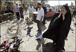 وأيضاً في بغداد حيث أصيب بها عراقيان بجروح خطيرة أمس الثلاثاء في انفجار عبوة ناسفة بالقرب من مبنى وزارة التخطيط العراقية وسط بغداد، حسب ما أفاد متحدث باسم وزارة الصحة العراقية.