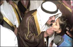 ولي العهد ينحني لتقبيل طفلة عقب تدشين سموه لمدينة الملك فهد الطبية.