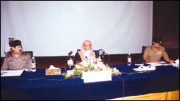 عدد من رجال الأمن يستمعون إلى نصائح سماحة مفتي عام المملكة حول دور رجل الأمن والمحافظة على هويته الإسلامية ومخافة الله في كل أعماله.