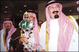 * الرياض - عايض البقمي : رعى صاحب السمو الملكي الأمير عبدالله بن عبدالعزيز ولي العهد نائب رئيس مجلس الوزراء رئيس الحرس الوطني رئيس نادي الفروسية مساء أمس حفل سباق نادي الفروسي.........