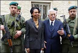 * رام الله - بلال أبو دقة - نائل نخلة - الوكالات: أشادت وزيرة الخارجية الأمريكية كوندوليزا رايس أمس الاثنين بالخطوات الملموسة التي اتخذها الرئيس الفلسطيني محمود عباس لمنع الهجمات ضد إسرائيل. وقالت رايس في مؤتمر صحافي مشترك عقدته مع عباس في رام الله بالضفة الغربية: نحن مسرورون لأن الرئيس عباس يتخذ خطوات ملموسة بشأن الأمن واستعادة القانون والنظام. وكان عباس أمر بنشر آلاف من عناصر أجهزة الأمن الفلسطينية في قطاع غزة في محاولة لمنع الهجمات. ودعت وزيرة الخارجية الأمريكية الفلسطينيين والإسرائيليين إلى بذل أقصى الجهود لمنح السلام في الشرق الأوسط فرصة، وقالت: حان الوقت ليبذل الطرفان أقصى الجهود لمنح السلام الحقيقي فرصة. وأضافت شعرت من محادثاتي هنا ومع رئيس الوزراء الإسرائيلي (أرييل شارون) أن الجانبين يدركان الفرصة التي أمامهما وكذلك مسؤولياتهما. وكشفت رايس أمس أن واشنطن تعتزم تعيين منسق خاص لمساعدة الفلسطينيين في الحفاظ على الأمن. وقالت رايس الفكرة: إن يكون هناك شخص مسؤول عن مساعدة الفلسطينيين على إصلاح قواتهم الأمنية وعن المراقبة (للهدوء الجديد على الأرض). وأضافت أن تلك الخطوة تهدف إلى التركيز على التدريب والتجهيز بالمعدات ومساعدة قوات الأمن الفلسطينية. من جهتها قال رئيس السلطة الفلسطينية محمود عباس: إنه يأمل في التوصل إلى دولة فلسطينية مستقلة متصلة قابلة للحياة. وعبّر عباس عن أمله في التوصل إلى دولة فلسطينية مستقلة متصلة قابلة للحياة تعيش جنباً إلى جنب مع دولة إسرائيل بأمن وسلام. ودعا مسؤولان فلسطينيان وزيرة الخارجية الأمريكية كوندوليزا إلى دعم السلطة الفلسطينية والضغط باتجاه الانسحاب الإسرائيلي وإعلان وقف لاطلاق النار من الجانبين. وقال نبيل أبو ردينة مستشار الرئيس الفلسطيني: نتطلع باهتمام إلى هذه الزيارة، معتبراً أنها تشكل انطلاقة جدية للحوار الفلسطيني الأمريكي على أعلى مستويات لوضع اللبنات الأساسية للحركة السياسية في المرحلة القادمة. وأضاف أن العلاقات الفلسطينية الأمريكية تشهد تطوراً ملموساً هذه الأيام، نريد ترجمته لخطوات للأمام لإنجاح كثير من القضايا بما فيها الانسحابات المتوقعة من قطاع غزة والضفة الغربية. من جهته قال وزير الخارجية الفلسطيني نبيل شعث: إن رايس (آتية لتدعم ما نقوم به). وأضاف أن الوزيرة الأمريكية تريد تسريع عملية السلام كما قالت والعودة إلى خريطة الطريق. وأشار إلى أن رايس تدرك أننا قمنا بالكثير بإرادتنا وباتفاقنا الوطني حول التهدئة ومطلوب أن تقدم لنا الدعم، موضحاً سنطرح عليها مطالبنا حول وقف إطلاق النار والانسحاب من المدن ومطالبنا الإستراتيجية حول القدس والجدار والاستيطان. من جهة أخرى عبّر أبو ردينة عن أمله في نجاح قمة شرم الشيخ التي ستعقد اليوم الثلاثاء بين عباس ورئيس الوزراء الإسرائيلي ارييل شارون برعاية الرئيس المصري حسني مبارك وبحضور عاهل الأردن الملك عبد الله الثاني. وقال: إن فرصة على وشك أن تتبلور (...) ونتطلع باهتمام إلى قمة شرم الشيخ والجهود العربية والدولية لإنجاح هذه الفرصة. وأضاف أن السلطة الفلسطينية تريد أن تنطلق عملية السلام على قاعدة واضحة للانسحاب من المدن الفلسطينية من أجل العودة إلى خريطة الطريق. ورداً على سؤال عمّا إذا كانت مسألة وقف إطلاق النار ستعلن في قمة شرم الشيخ، قال أبو ردينة: إن هذا أحد المطالب الفلسطينية لإنجاح أي تفاهم (..) الوصول لوقف إطلاق نار متبادل ومعلن ورسمي يلزم الطرفين للبناء عليه.
