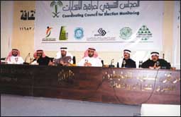 * الرياض - أحمد القرني - حسين فقيه: التقى المجلس التنسيقي لمراقبة الانتخابات ظهر أمس المشكل من سبع جمعيات وهيئات الجمعية السعودية للإدارة وجمعية الاقتصاد السعودية والهيئة السعودية للمحاسبين القانونيين والجمعية السعودية للإعلام والاتصال وجمعية الجغرافيين السعوديين وهيئة الصحفيين والجمعية الوطنية لحقوق الإنسان، وبحضور بعض رؤساء تلك الجمعيات ومندوبيها وذلك بالمراقبين للانتخابات البلدية بمنطقة الرياض. هذا وقد بدأ الدكتور عبدالله الجحلان الأمين العام لهيئة الصحفيين بكلمة ترحيبية بالحضور وثمن لهم الدور الايجابي في عملية مراقبة الانتخابات البلدية بمنطقة الرياض ومساهمتهم الفعالة كجهة محايدة في هذه الانتخابات التي تعد تجربة أولى في المملكة وكانت ناجحة في جميع برامجها ولله الحمد. وأوضح د. الجحلان بأنه عقد مؤتمراً صحفياً مساء يوم الانتخابات الخميس أعلن من خلاله بعض الملاحظات التي حدثت في بعض المراكز الانتخابية وذلك من خلال وسائل الإعلام المقرؤة والمرئية. فيما شدد د. الجحلان على رفع الملاحظات عن المراقبين مكتوبة ليتم الاخذ بها في التقرير النهائي للمجلس. بعدها جرت بعض المداخلات من المراقبين والمناقشات التي تصب في مصلحة الرقابة الانتخابية. مشاهدات - شارك أعضاء من مجلس الشورى في لجنة المراقبة المحلية للانتخابات البلدية وكان من ضمنهم د. عبدالمحسن عبدالعزيز العكاس وزير الشؤون الاجتماعية الذي أعفي من دوره الرقابي بعد صدور الأمر الملكي بتعيينه وزيرا للشؤون الاجتماعية، وأ.د. عبدالرحمن حمود العناد والدكتور محمد حمد الفنيبط والدكتور عبدالجليل علي السيف ود. حمود البدر أمين عام مجلس الشورى. - قام المجلس التنسيقي لمراقبة الانتخابات بتوزيع الشهادات التقديرية ومكافآت مالية على اعضاء لجنة المراقبة الذين شاركوا في مراقبة الانتخابات البلدية. - طرح المشاركة للمراقبين في الانتخابات البلدية خارج منطقة الرياض لمختلف مناطق المملكة اختيارياً.