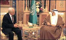 * الرياض - واس: استقبل خادم الحرمين الشريفين الملك فهد بن عبدالعزيز آل سعود -حفظه الله- في مكتبه بقصر اليمامة أمس أخاه فخامة الرئيس الدكتور محمود عباس رئيس السلطة الوطنية الفلسطينية والوفد المرافق له. وقد رحب خادم الحرمين الشريفين بفخامته في بلده الثاني المملكة العربية السعودية متمنياً له طيب الإقامة. وعبر فخامة الرئيس الفلسطيني عن شكره وتقديره لخادم الحرمين الشريفين على حسن الاستقبال والضيافة التي حظي بها منذ وصوله، مؤكداً الدور البارز والكبير للمملكة لدعمها للشعب الفلسطيني لاسترداد حقوقه وإقامة دولته. وقد جرى خلال الاستقبال بحث مجمل الأوضاع على الساحات العربية والإسلامية والدولية، خاصة القضية الفلسطينية والوضع في العراق. وجدد خادم الحرمين الشريفين خلال اللقاء دعم المملكة ووقوفها إلى جانب الشعب الفلسطيني الشقيق لتمكينه من حقوقه وبناء دولته المستقلة على أرضه وعاصمتها القدس. كما جرى بحث آفاق التعاون بين البلدين وسبل دعمه وتعزيزه في جميع المجالات. حضر الاستقبال صاحب السمو الملكي الأمير سعود بن فهد بن عبدالعزيز نائب رئيس الاستخبارات العامة ومعالي رئيس الديوان الملكي الأستاذ محمد النويصر ومعالي المستشار الخاص لخادم الحرمين الشريفين الأستاذ إبراهيم العنقري ومعالي وزير الدولة عضو مجلس الوزراء الدكتور عبدالعزيز الخويطر ومعالي وزير الدولة عضو مجلس الوزراء الدكتور مساعد العيبان الوزير المرافق ومعالي المستشار في الديوان الملكي الدكتور فهد البراهيم ومعالي رئيس المكتب الخاص لخادم الحرمين الشريفين الأستاذ محمد السليمان ومعالي نائب رئيس ديوان رئاسة مجلس الوزراء الأستاذ صالح البراهيم. كما حضره من الجانب الفلسطيني معالي عضو المجلس التشريعي الأستاذ عزام الأحمد ومعالي مستشار الأمن القومي الأستاذ جبريل الرجوب ومعالي المستشار الإعلامي الأستاذ نبيل أبو ردينة وسفير فلسطين لدى المملكة الأستاذ مصطفي هاشم الشيخ ديب.