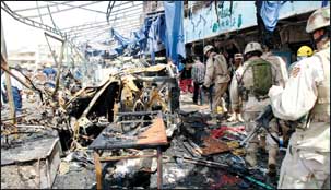 * كركوك - بغداد - سامراء - الوكالات: قتل أربعة مدنيين وأصيب 113 على الأقل في انفجار سيارة مفخخة استهدفت أحد المطاعم الشهيرة في ضاحية الطالبية شرقي بغداد وفقما أفاد شهود عيان أمس الاثنين.. وأكدت وزارة الداخلية العراقية وقوع الانفجار. وقال الشهود: (إن سيارات الإسعاف قامت بإجلاء أربعة قتلى والعشرات من الجرحى إلى المستشفيات). ومن جهته قال العقيد عدنان عبدالرحمن المتحدث الإعلامي لوزارة الداخلية: (إن الانفجار أوقع عدداً كبيراً من الإصابات وتدمير 14 سيارة مدنية). ويعد مطعم حبايبنا من أكثر المطاعم الشعبية التي تقدم للزبائن الأكلات الشعبية التي تحظى بإقبال كبير. إلى ذلك انفجرت شاحنة ملغومة أمس الاثنين أمام مكتب رئيس بلدية طوز خورماتو جنوبي كركوك في هجوم انتحاري قرب موكب مسؤول كردي مما أدى إلى مقتل خمسة أشخاص وإصابة 18 وفقما أفادت الشرطة العراقية. وأضافت أن محمد محمود وهو من حزب الاتحاد الوطني الكردستاني أصيب في الهجوم وأن عدداً من أفراد قافلته قتلوا وجرحوا وكان من بين القتلى شقيق مسؤول كبير في الحزب. وفي غضون ذلك انفجرت صباح أمس أيضاً سيارتان ملغومتان استهدفتا القاعدة الأمريكية وسط مدينة سامراء الواقعة شمال العاصمة العراقية بغداد. وذكر راديو لندن أن السيارة الأولى التي كان يقودها انتحاري.. يبدو أنها كانت تمهد الطريق للسيارة الثانية، حيث اندفعت الأولى نحو مدخل القاعدة الأمريكية في المدينة، ثم اندفعت بعدها السيارة الثانية وهي عبارة عن صهريج للوقود وأحدثت انفجاراً شديداً مما أسفر عن وقوع خسائر جسيمة في المكان. وقد أسفر الانفجار عن مقتل مدني عراقي وإصابة ثلاثة جنود أمريكيين، إضافة إلى أربعة عراقيين وذلك حسب مصادر أمريكية عسكرية ومصادر عراقية طبية في مستشفى سامراء العام. ومن ناحية أخرى قتل جنديان عراقيان وأصيب آخر جراء هجوم شنّه مسلحون بعشر قذائف هاون على إحدى نقاط الشرطة في مدينة سامراء شمال العاصمة بغداد وفقما أعلنت مصادر عسكرية عراقية. وفي السياق نفسه أعلن الجيش الأمريكي أمس الاثنين أن ثلاثة جنود أمريكيين قتلوا الأحد في هجومين منفصلين في مدينة الموصل في شمال العراق.. ولم يقدم بيان الجيش الأمريكي تفاصيل عن الهجومين اللذين قتل فيهما الجنود الثلاثة. وفي وقت سابق كان الجيش قد أعلن عن مقتل جندي أمريكي آخر في هجوم بسيارة ملغومة أمس الأول قرب تكريت. وبخصوص الاغتيالات أعلن مصدر في وزارة الداخلية العراقية أن مسلحين قتلوا صباح أمس الاثنين مستشار رئيس الوزراء العراقي إبراهيم الجعفري مع سائقه في بغداد. وقال هذا المصدر: إن (مسلحين قتلوا حوالي الساعة التاسعة بالتوقيت المحلي (الخامسة بتوقيت غرينتش) وائل الربيعي المستشار في مجلس الوزراء في حي المنصور في منطقة قريبة من السفارة الروسية غرب بغداد).