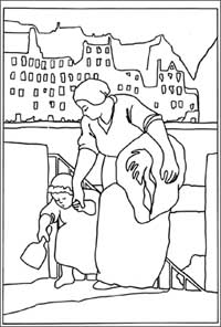 اسم اللوحة: المرأة الغسالة للرسم الفرنسي هونوريه دومييه نوع اللوحة: واقعية تاريخها : 1861-1863 معروضة في متحف الفنون، نيويورك المرأة الغسالة عبارة عن مشهد بسيط من الحياة اليومية للناس العاديين الذين لم ينتبه لهم أحد، وقد رأى الرسام ما لم يره الناس في ذلك الوقت، ليصبح للوحة البسيطة في أيامنا هذه تقدير كبير. لَوِّنْ اللوحة ودع مخيلتك تدلك على ما يجب أن تقوم به، لا تقلق بشأن الدقة في التلوين. إن الفنانين الذين رسموا هذه اللوحات لم يتقيدوا بأي شيء، وقد تحدوا الاعتقادات السائدة، ربما أصبحت أنت مثلهم واحتلت لوحاتك مكاناً في أحد متاحف العالم في المستقبل.. لَوِّنْ اللوحة وأرسلها لنا مع صورتك الشخصية.