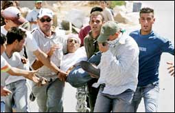 * بيت لحم - رام الله - بلال أبو دقة: أُبلغت الجزيرة من مصادر فلسطينية محلية في مدينة بيت لحم بالضفة الغربية أن مستوطنا صهيونيا دهس وبشكل متعمد مسنة فلسطينية في المدينة صباح يوم أمس الجمعة.. وقالت مصادرنا الطبية في المدينة: إن المسنة الفلسطينية (مريم علي خليل عيسى - 69 عاماً)، أصيبت بجراح بالغة جراء قيام مستوطن صهيوني بدهسها، ما استدعي نقلها إلى المستشفى ووفق شهود العيان فإن المستوطن الصهيوني قام متعمداً بدهس المسنة عيسى من بلدة الخضر على الطريق الالتفافية (رقم 60) التي غالبا ما يسلكها المستوطنون الصهاينة.. إلى ذلك، أفادت تقارير صحفية إسرائيلية بأن مواجهات شديدة اندلعت يوم أمس الجمعة بين متظاهرين فلسطينيين واسرائيليين ضد الجدار العازل وبين قوات الجيش الإسرائيلي في قرية بلعين الواقعة غرب مدينة رام الله في الضفة الغربية. ونقلت هذه التقارير عن متظاهرين في بلعين قولهم: إن الجيش الإسرائيلي أطلق أعيرة مطاطية وقنابل صوتية وقنابل مسيلة للدموع باتجاه المتظاهرين ووفق مصادر الجزيرة في بلعين: استخدمت القوات الإسرائيلية لأول مرة أعيرة من الإسفنج ضد المتظاهرين. وقالت التقارير:إن متظاهرين إسرائيليين وفلسطينيا أصيبوا بجراح خلال المواجهات مع القوات الإسرائيلية فيما تم اعتقال أربعة إسرائيليين بينهم صحفي وقالت مصادر صحفية إسرائيلية: إن الجنود الإسرائيليين أطلقوا الأعيرة المطاطية باتجاه بيوت المواطنين الفلسطينيين في قرية بلعين، المهددة أراضيها بالمصادرة لصالح جدار الفصل العنصري.