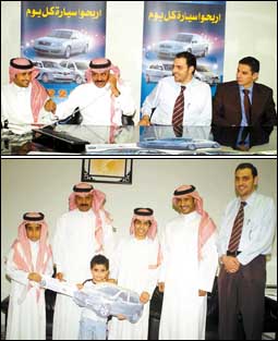 * الجزيرة - الرياض: تمخض سحب جائزة الجزيرة الكبرى السابعة عن فوز المتسابق عبدالعزيز بن محمد فهد بن جليل من مدينة الرياض بسيارة من طراز سكودا فابيا من مجموعة فولكس فاجن العالمية موديل 2005م. وكانت اللجنة المكلفة بسحب اسم الفائز قد اجتمع أعضاؤها وهم مدير الفرع في منطقة الشرقية بشركة سفاري للسيارات الأستاذ محمد الغنام، ومشرف المبيعات بشركة سفاري الأستاذ يوسف شاهين ومدير مشروع بشركة غراء الأستاذ عرفات سيف اليافعي، ومن (الجزيرة) الزملاء نائب رئيس التحرير عبداللطيف بن سعد العتيق ومدير المطابع نبيل سهل ومشرف وحدة الإنترنت ماجد العنزي. وإذ تزف (الجزيرة) أبلغ تهانيها للفائز، وتتمنى حظاً أوفر للمشاركين.