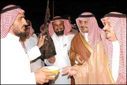 * بريدة - بندر الرشودي: في أمسية تعانق فيها عبق الماضي المتمثل في تاريخ رجال العقيلات مع وفاء رجال الحاضر الذي تجسد في زيارة صاحب السمو الملكي الأمير فيصل بن بندر بن عبدالعزيز - أمير منطقة القصيم - وصاحب السمو الملكي الأمير عبدالعزيز بن ماجد بن عبدالعزيز - نائب أمير منطقة القصيم - رافقهم صاحب السمو الملكي الأمير سعود بن عبدالعزيز بن ماجد، لمجالس العقيلات مساء أمس الأول، ذلك المكان الذي يبرز صورة الآباء والأجداد ويرسخ معانيها الأصيلة في أذهان شباب الحاضر ورجال المستقبل لينهلوا من علومهم وصفاتهم وكفاحهم الذي نثروا فيه قصصاً ليس لها مثيل.. وقد كان في استقبال سموهما لدى وصولهما مقر المجالس الشيخ علي بن محمد الهبدان - أحد رجال العقيلات المتأخرين - الذين عاصروا أواخر تاريخ العقيلات المجيد، ورئيس اللجنة التنظيمية لمهرجان بريدة الأستاذ صالح بن عبدالله التويجري والمشرف على مجالس العقيلات الأستاذ عبدالله بن علي الهبدان. وعاش سموهما حياة رجال العقيلات حينما اطلعا على البئر والركايب وبيت الشعر وحمس القهوة وتجهيزها، في لحظات أعادت الجميع إلى أجواء تاريخية عبقة لم يملك سموهما والحضور إلا أن يبتهلوا للعلي القدير أن يتغمد مَنْ مات منهم في جنات النعيم، وأن يطيل في عمر مَنْ مازال على قيد الحياة.. مشاهدات * أبدى سمو أمير منطقة القصيم إعجابه بما شاهد من ترسيخ للصورة الزاهية لأبطال العقيلات. * تم عرض مسيرة العقيلات التي نفذت الخميس الماضي التي انطلقت من (الجردة) حتى (مناخ العقيلات). * أكد الأمير فيصل بن بندر على أهمية عرض مجالس العقيلات وما يدور في جنباتها من قصص كفاحية وسيرة عطرها، على الهيئة العليا للسياحة من أجل دعمها واعتمادها كبرنامج سياحي دائم. * استمع سموهما لخط سير مسيرة العقيلات من الشيخ علي بن محمد الهبدان الذي عاصر السنوات الأخيرة لأولئك الرجال وعمره لم يتجاوز الاثنتي عشرة سنة، كما تعرف سموهما على بعض قصصهم وحكاياتهم البطولية خلال رحلاتهم التاريخية. كرم أمير القصيم الأبطال الصغار الذي قاموا بمسيرة على الركايب (الإبل) انطلقت من جبة إلى الجوف شاقين المسافات الشاسعة للنفود الكبير، في رحلة بطولية، شارك فيها من مدينة بريدة (15) بطلاً لم تتجاوز أعمارهم خمسة عشر ربيعاً. * استمع سموهما إلى بعض قصائد الشاعر سليمان إبراهيم البازعي عن العقيلات الذي كان يقيم أمسية شعرية ضمن البرنامج اليومي للمجالس. * اطلع سموهما على وثيقة تاريخية يعود تاريخها إلى عام 1340هـ كان قد بعث بها الملك المؤسس عبدالعزيز بن عبدالرحمن - طيب الله ثراه - لأهالي مدينة بريدة، يطلب مهم ترشيح رجل من بريدة ليكون سفيراً للملك عبدالعزيز في دولة سوريا. * أجزل جميع القائمين على مجالس العقيلات وفي مقدمتهم الشيخ علي محمد الهبدان شكرهم وتقديرهم لسمو أمير القصيم وسمو نائبه على دعمهما لمسيرة مهرجان بريدة بشكل عام، ولمجالس العقيلات بشكل خاص، مؤكدين بأن هذه الزيارة تمثل دعماً حقيقياً لبرنامج يحكي جزءاً مهماً من مخزون تاريخي وأدبي لرجال مدينة بريدة.