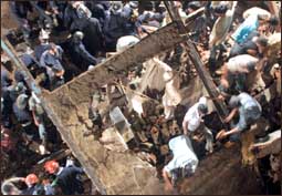 * مومباي - رويترز: انهار مبنى سكني من أربعة طوابق في مدينة مومباي العاصمة المالية للهند في الساعات الاولى من صباح أمس مما أسفر عن مقتل عشرة اشخاص فيما لا يزال 25 آخرين على الاقل محصورين تحت الانقاض. وقال ضابط شرطة إن فرق المطافي والشرطة أنقذت 47 شخصا من المبنى الواقع في منطقة نجبادا المكتظة بالسكان في وسط مومباي. ومن المعتقد أن ما بين 25 الى 30 شخصاً ما زالوا محصورين تحت انقاض المبنى الذي كان يوجد به مصنع للملابس في الطابق الارضي. وأظهرت لقطات تلفزيونية افرادا من المطافي والشرطة وهم ينقبون بأيديهم في الانقاض بحثا عن ناجين. وقالت قنوات تلفزيونية ان سكان المنطقة شكلوا في وقت سابق سلسلة بشرية لرفع الانقاض ومساعدة الجرحى قبل ان تصل فرق الانقاذ. وقال ضابط الشرطة ان 31 شخصا على الاقل اصيبوا بجروح في الانهيار الذي وقع بعد الساعة الواحدة صباحا بقليل. واحيانا ما تنهار مبان قديمة تفتقر الى الصيانة اثناء الامطار الموسمية في مومباي أكبر مدينة في الهند. وفي يوليو تموز قتل أكثر من 1000 شخص في مومباي وولاية مهاراشترا الغربية بعد امطار غزيرة تجاوزت المستويات القياسية.