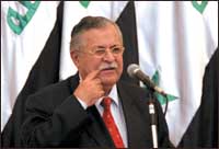 * بغداد - كوبنهاجن: تعرض موكب تابع للرئيس العراقي جلال طالباني يوم أمس لهجوم قرب مدينة طوز خور ماتو شمال بغداد. ذكر ذلك مصدر بشرطة محافظة صلاح الدين شمال بغداد. وقال المصدر: إن الهجوم أدى إلى مقتل شخصين وإصابة 3 آخرين من أفراد الحماية وأشار إلى أن الرئيس طالباني كان غير موجود بالموكب. وأوضح المصدر أن الهجوم بدأ بانفجار عبوة ناسفة استهدفت السيارة الأولى في الموكب أعقبه الهجوم بأسلحة خفيفة ومتوسطة من جانب مسلحين. من جهة أخرى، قُتل يوم أمس 11عراقياً بينهم ضابطان في الشرطة والجيش وأُصيب ثمانية آخرون في هجمات منفصلة في بغداد وشمالها. أعلنت مصادر في وزارة الداخلية والشرطة العراقية. وقال مصدر في وزارة الداخلية فضّل عدم الكشف عن هويته: (قُتِل عراقيان أحدهما ضابط شرطة بنيران مسلحين مجه.........