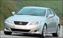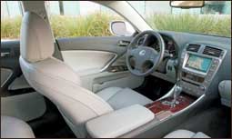 علبة التروس تتوافر آي إس 250 كفئة التوربو ديزل مع علبة تروس بست نسب أمامية تسمح لها ببلوغ سرعة مائة كلم/ ساعة بعد الانطلاق بزمن 8.4 ثانية، والسرعة القصوى تصل إلى220 كلم/ ساعة. وهي علبة تروس يدوية في فئة آي إس 220 دي، وأوتوماتيكية قابلة للتشغيل أيضا على نحو تعاقبي في فئة آي إس 250 الأوتوماتيكية، إما من مقبض الغيار أو من أزرار المقود. التقنيات العصرية الحديثة في سعيها إلى تقوية صورة لكزس في أوروبا، لم تتكل تويوتا فقط على إضافة التوربو ديزل وحده، ولا على التصميم والديناميكية في نظام التعليق وعلبة التروس، بل جهّزت آي إس الجديد بعدداً من أحدث التقنيات العصرية الأخرى في مجالات الحماية الفاعلة، وليس أقلها نظام التحكم الالكتروني الاستباقي لوقوع الحوادث، إذ لا يكتفي الأخير بتشغيل وسائل الحماية الفاعلة والساكنة المألوفة قبيل وقوع الحادث لتصحيح مسار السيارة، بل يتضمن وظيفة جديدة تتحكم أيضا بتوجيه العجلتين الأماميتين مؤقتاً، لتصويب الاتجاه وتفادي الحادث إذا أمكن ذلك. ولتمكين نظام التحكم الالكتروني من ضبط توجيه العجلتين الأماميتين وتصحيحه إذا تطلب الأمر ذلك، تحوّل نظام التعزيز أو المساعدة لتليين دوران المقود في يد السائق من النظام الهيدروليكي إلى الكهربائي، بما يضمن مزيداً من الهدوء مع خفض نسبي لاستهلاك الوقود، وتبديل مستمر لدرجة اللين أو التقسية حسب سرعة السيارة. التجهيزات الداخلية تتميز المقصورة بأناقة تصميمها وتجانسه من دون لمعية مبالغة، بل بلمسات معدنية متناغمة مع التلبيسات الخشبية المركزة خصوصاً في الكونسول بين المقعدين، والإنارة الموزعة في مواضع عدة من المقصورة بما فيها محيط الأقدام وعتبة الأبواب فوق مقبض غيار السرعة وغيرها، ويبدو الغنى التقني أكثر في قائمة التجهيزات، خصوصاً تلك المدرجة أساسا، ومنها ما لا يقل عن عشر وسادات هوائية، وسادتان مواجهتان وأخريان جانبيتان في المقدمة، مع وسادتين أيضا لحماية ركبتي كل من السائق والراكب الأمامي، ووستارتين هوائيتين لحماية رؤوس الركاب الجالسين قرب النوافذ الأربع. ويستغل نظام القفل المركزي بطاقة تشغيل الكترونية للدخول إلى المقصورة وذلك بلمس الجهة الداخلية لمقبض فتح الباب من الخارج وتشغيل المحرك بكبسة زر. وتتضمن التجهيزات الأساسية في المواصفات الأوروبية الغربية لفئتي آي إس 220 دي وآي إس 250، كلا من أنظمة منع الانزلاق الكبحي ABS والدفعي TRC وبرنامج التحكم بالثبات لتصحيح شرود الهيكل، والتوزيع الالكتروني لضغط الكبح EBD ومضاعف ضغط الكبح BAS في حالة الطوارئ. التجهيزات الإضافية يمكن الحصول إضافياً على نظام التحكم المتكامل بديناميكية السيارة VDIM والذي يضيف إلى وظائف برنامج التحكم بالثبات، المساهمة في تصحيح توجيه السيارة إلى جانب تدخل المكابح الملائمة والتحكم الالكتروني بأداء المحرك وفي وقت مبكر جداً ليتم التصحيح بنعومة، وذلك تبعاً للمعلومات المنقولة باستمرار من أجهزة رصد سرعة كل من العجلات، ونظامَي الكبح والتوجيه، ودرجة الشد الطولي والعرضي للهيكل. وتجهّز فئة آي إس 250 بنظام الحماية الاستباقية PCS الذي يرصد ما يقع أمام السيارة، إضافة إلى أجهزة رصد سرعة كل من العجلات ووضعية المقود والشد الطولي والعرضي للهيكل، لكشف احتمالات وقوع حادث، فيتدخل عند الضرورة بشد أحزمة الحماية بعض الشيء لتثبيت الركاب في مقاعدهم ويرفع الضغط في نظام الكبح لزيادة فاعليته فور ضغط السائق على الدواسة. ومن التجهيزات الإضافية الممكن طلبها أيضاً، نظام الإنارة العامل بمصباحَي كزينون مزدوجين bi-xenon في المقدمة مع تقنية التوجيه الانعطافي I-AFS والتي تسمح بانعطاف قسم من النور، مع حركة توجيه المقود وذلك حتى 15 درجة إضافية لكشف مساحة أوسع من المسار الذي ستبلغه السيارة تباعاً. وكذلك نظام الرؤية الخلفية وهي عدسة تصوير قرب لوحة التسجيل، وتنقل الصورة إلى الشاشة الملونة وسط لوحة القيادة للمساعدة عند الرجوع، والتحكم المتكيّف بسرعة السيارة وبالهامش الفاصل بينها وبين ما 