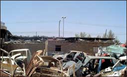* وجدنا مخالفات صريحة.. فقد تجد منجرة بجوار ورشة حدادة أو ورشة سيارات بجوار مطعم أو ورشة بجوار بنك أو فندق، إضافة لبعض المخالفات داخل الورش كرش البويات في الهواء الطلق ووجود الزيوت المتناثرة والمخلفات داخلها والتسليك الكهربائي البدائي لعدد من تلك الورش وغيرها مما يصعب سرده في مثل هذا التقرير. * أفاد أحد ملاك تلك الورش أنه تم تجديد رخصة ورشته لأكثر من 3 سنوات قادمة مما يدل على عدم جدية البلدية في نقل تلك الورش خلال الأيام القادمة. * شاهدنا أرتالاً من مخلفات تلك الورش خلف وفوق أسطح تلك الورش في منظر لا يعبر عن وجود متابعة من الجهات ذات العلاقة. * تشهد المدينة الصناعية بالشرافاء خلال هذه الفترة إعادة صيانة لشوارعها رغم مرور أكثر من عقدين من الزمان دون الاستفادة منها سوى وجود مصنع للمياه وبعض من مصانع البلاستيك. * وجدنا أغلب العمالة التي تعمل في هذه الورش تسكن في غرف داخل هذه الورش أو ملاصقة لها من الخلف مما يضاعف من خطورة وجود تلك الورش خاصة داخل الأحياء السكنية.