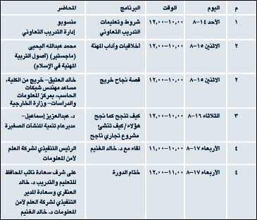 * الرياض - الجزيرة: تقيم كلية الاتصالات والمعلومات بالرياض خلال هذا الأسبوع ملتقى تثقيفياً وتدريبياً لطلابها ويشمل هذا الملتقى العديد من الدورات وورش العمل لتأهيل الطلاب لسوق العمل. وسوف يحضر الحفل الختامي للدورة نائب المحافظ للتعليم والتدريب د. خالد العنقري والرئيس التنفيذي لشركة العلم لأمن المعلومات د. خالد الغنيم. وأوضح د. أحمد الحامد عميد الكلية أن الكلية تعتزم إقامة دورات متعددة لمتدربي الكلية تؤهلهم بها لمجالات العلاقات الإنسانية والتسويق والتميز في الأداء. وقال نتمنى أن تكون هذه الدورات رصيداً كبيراً للطالب مع رصيده في التحصيل الأكاديمي. الجدير بالذكر أن الكلية تلزم طلابها بأخذ تدريب تعاوني مع الشركات والمؤسسات لفصل دراسي كامل تمهيداً لدخولهم لسوق العمل.