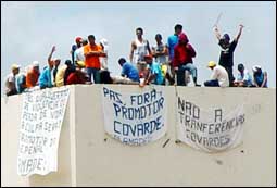 * ساو باولو (البرازيل) - (رويترز): قالت الشرطة البرازيلية إنها توصلت إلى اتفاق مع سجناء يقودون تمرداً في سجن ناء في منطقة الأمازون وانهم ينتظرون إطلاق سراح نحو 200 رهينة احتجزهم السجناء لدى زيارتهم ذويهم واصدقائهم يوم ذكرى الميلاد. وقال لينيلسون جيبيس المتحدث باسم الشرطة إن من المقرر أن يطلق السجناء في سجن اورسو برانكو في ولاية روندونيا سراح الرهائن وأغلبهم من النساء وبعضهن حوامل وأن ينهوا تمردهم في وقت قريب بعد أن تلقوا وعوداً بأن تلبي السلطات بعض مطالبهم. وطلبت المجموعة التي قادت التمرد الذي بدأ عندما توافد الأقارب والأصدقاء لزيارة ذويهم يوم ذكرى الميلاد بعودة زعيمها ادنيلدو باولو سوزا للسجن. وكان سوزا قد فر قبل اسبوعين ثم قبض عليه ونقل إلى سجن آخر. وقال الكابتن لويز سيسار من شرطة الولاية إن سوزا سيعود للسجن قريباً وإن السجن تعهد بمعاملة أسر وزوار السجناء بقدر أكبر من الاحترام. وطالب السجناء كذلك بإبعاد ممثل ادعاء من منصبه لكن المسؤولين لم يوضحوا ما إذا كانوا سيلبون هذا الطلب. وقالت الشرطة إن فرق الإطفاء والطوارئ تنتظر في الموقع لتقديم المساعدة للرهائن والحراس والسجناء لكن لم يتضح ما إذا كان هناك مصابون بجروح خطيرة أو قتلى. ونقل تقرير لوكالة الأنباء المحلية عن مصادر من المتمردين قولها إن 17 سجيناً قتلوا في اعمال الشغب لكن الشرطة لم تؤكد ذلك. ويعتبر سجن اورسو برانكو من أكثر السجون عنفاً في البرازيل التي يمتلئ سجلها باضطرابات دموية في السجون. ويضم السجن 950 نزيلاً بينما هو مخصص ليضم نحو نصف هذا العدد. وفي ابريل نيسان عام 2004 قتل نحو 15 شخصاً في تمرد استمر اسبوعاً في اورسو برانكو. وأظهرت لقطات فيديو وصور فوتوغرافية مجموعة من النزلاء وهم يلقون بأشلاء بشرية ورؤوس من فوق أبراج السجن. ويتمركز نحو 200 من قوات الشرطة خارج السجن الذي يبعد 3070 كيلومترا عن ساو باولو.