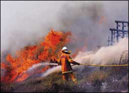 وفي عام 2003 دمرت حرائق الغابات في أستراليا مساحة تقارب ثلاثة أمثال مساحة بريطانيا وسط واحدة من أسوأ موجات الجفاف في البلاد في قرن.