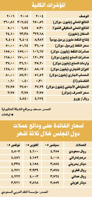 وتوقع التقرير أن تستمر عجلة النمو الاقتصادي نظرا للظروف الواعدة في عام 2006م. كما يحتمل أن تبقى عائدات النفط قوية على خلفية أسعار النفط ومستويات الإنتاج المرتفعة. وسوف تستمر المملكة، كما هو متوقع، في توسعة طاقتها الإنتاجية بهدف مواجهة الطلب المتنامي.