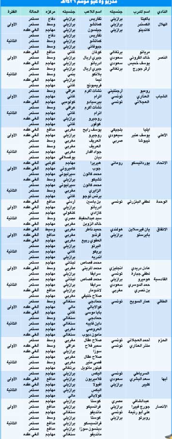 كان نصيب القادسية هو الأكبر بواقع 5 مدربين تلاه فريقا الأنصار النصر ب4 مدربين وتساوت أندية الهلال والشباب والأهلي وأبها بواقع 3 مدربين وإن كانت حالة الفريق الهلالي هي الأفضل بسبب اختيار مدربه لتدريب منتخبنا الوطني الأول.