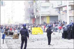 وكان المتظاهرون ومعظمهم من الملثمين يتحركون بمجموعات من ثلاثين إلى أربعين شخصاً وقد رشقوا رجال الأمن بالحجارة وألقوا عليهم الزجاجات الحارقة. ورشقوا أيضاً بالحجارة المباني العامة خلال حوادث وقعت خصوصاً في حي بغلار الشعبي. وردت شرطة مكافحة الشغب بإطلاق القنابل المسيلة للدموع واستعمال خراطيم المياه وإطلاق عيارات تحذيرية. وأوضحت السلطات المحلية أن تعزيزات أرسلت إلى دياربكر من خمس محافظات مجاورة. واتخذت تدابير أمنية مع إمكانية الاستعانة بالجيش. وقد وصلت دبابات من حامية تقع على تخوم المدينة.