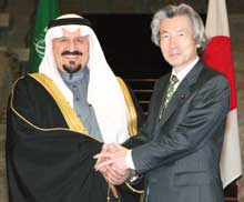 عقد صاحب السمو الملكي الأمير سلطان بن عبدالعزيز ولي العهد نائب رئيس مجلس الوزراء ووزير الدفاع والطيران والمفتش العام ورئيس الوزراء الياباني جونيشيرو كويزومي مباحثات رسمية صدر على إثرها بيان مشترك أكد على أهمية إقامة شراكة إستراتيجية متعددة المستويات بين المملكة واليابان.
