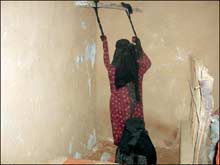 صورة لعملية الولادة في الزمن السابق وهي تعلق المرأة ب(الوتد) أثناء الولادة، هذه الصورة المجسمة أخذت من متحف إبراهيم الحمدان بوادي الجناح بعنيزة.