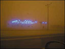 ولقد صبغت العاصفة أجواء المحافظة باللون البني.