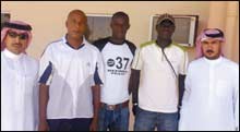وصل إلى مطار حائل ظهر يوم أمس الثلاثاء لاعبا نادي الطائي السنغاليان مانديون سيلا (مدافع) وأمادي سيسيه (مهاجم) قادمين من جدة برفقة مدير أعمالهم السنغالي ماما دوصو الذي كان محترفاً في نادي الطائي سابقاً، هذا وكان في استقبالهم في المطار مدير العلاقات العامة بنادي الطائي الأستاذ ماجد السديري بالإضافة إلى عضو مجلس الإدارة الأستاذ عبدالعزيز الصقيه.