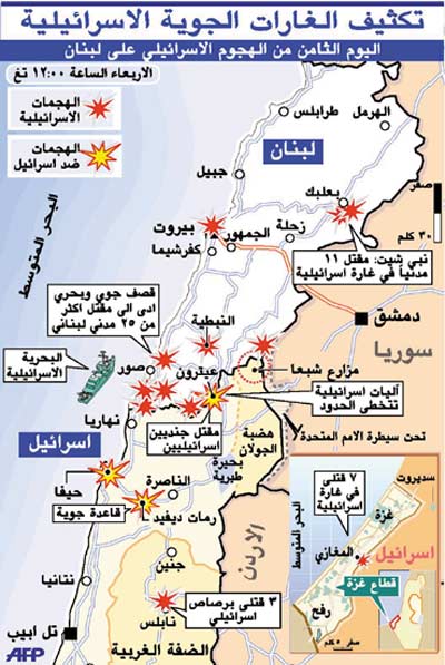 وقال الخبير العسكري الاستراتيجي اللواء صلاح الدين سليم: إن الأسلوب العسكري الذي تبعته إسرائيل في مواجهة حزب الله يعتمد على ثلاث مراحل الأولى استهداف البنية التحتية كالمطارات وشبكات الطرق، وإسرائيل نجحت في تطبيق هذه المرحلة ونجحت في تدمير الموسم السياحي اللبناني.