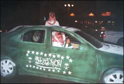 عاشت العاصمة الرياض أمس احتفالات كبيرة بمناسبة اليوم الوطني السادس والسبعين حيث اكتظت شوارع الرياض التي رفعت عليها الرايات ولقد تزامن مع الاحتفال خروج أعداد كبيرة من المواطنين الذين عبروا عن حبهم بصبغ سياراتهم بألوان العلم وكذلك قيام بعضهم بصبغ وجوههم حيث التقت (الجزيرة) عددا منهم.