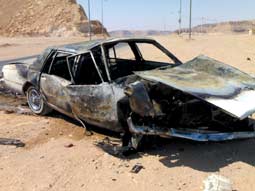 وقع حادث تصادم عنيف وجهاً لوجه بين سيارتين الأولى من نوع كامري والأخرى من نوع كابرس شفرولية وذلك على طريق الفرعة بمحافظة حوطة بني تميم وبالتحديد عند منعطف سد المحافظة، حيث نتج عن التصادم اشتعال النيران في السيارة الكابرس على الفور نتيجة لقوة الارتطام، وتلفيات كبيرة بالسيارة الأخرى. وباشرت فرق الدفاع المدني الحادث وأخمدت الحريق بعد أن تحولت السيارة إلى ركام حيث تم نقل قائدي السيارتين عبر إسعاف الهلال الأحمر إلى مستشفى المحافظة لتلقي العلاج لتأثرهما بإصابتهما وأدخل قائد الكابرس غرفة العناية المركزة لإصابته بكسور وجروح مختلفة. وباشرت الجهات الأمنية الحادث وفتحت تحقيقاً حول أسبابه.