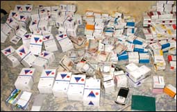 * الرياض - سعود الشيباني - تصوير - سعد العنزي: أطاحت قوة المهمات والواجبات الخاصة بشرطة منطقة الرياض بعصابة تروج أدوية طبية مجهولة المصدر تتكون من 6 أشخاص داخل منزل مهجور بحي الشميسي وسط العاصمة الرياض، وكانت قوة المهمات قد توفر لديها معلومات عن قيام عمالة بترويج أدوية طبية حيث تم تكليف فرق البحث والتحري برصد أفراد العصابة والتأكد من المعلومات ومتابعة العصابة. وعند الساعة الحادية عشرة من منتصف ليل أمس الأول تم مداهمة منزل بحي الشميسي وضبط 6 أشخاص يتقدمهم زعيم العصابة شريف بنغالي الجنسية وعثر لديهم على كميات كبيرة من الأدوية وتحتوي على 8 أنواع من بينها أدوية غالية الثمن للأعصاب والايدز ويقدر سعرها بالسوق 61 للعلبة الواحدة. وقد اعترفت العصابة بقيادة الزعيم (شريف) أنهم يمارسون ترويج الأدوية مجهولة المصدر منذ أكثر من 6 أشهر على عدد من الصيدليات والمواطنين والمقيمين أما الأدوية غالية الثامن بعضها يتم تهريبها إلى بلادهم بطرق غير نظامية، وقال زعيم العصابة شريف إنهم لا يعملون في مجال الطب ولكنهم يعملون بعدة مهن مختلفة أبرزها البناء مشيرا إلى أن الجوازات والاقامات المزورة التي عثرت لديهم يستخدمونها في حالة ممارستهم لترويج الأدوية على الصيدليات كما أنهم لا يمارسون بيع الأدوية ليلا وفي النهار يمارسون أعمالهم الخاصة، وأضاف الزعيم أن دخل العصابة الشهري يقدر بأكثر من 80 ألف ريال مؤكدا أنهم استأجروا المنزل بـ5000 ريال في السنة. وقد عثر على الأدوية مخزنة داخل غرفة في السطوح ولا يوجد أدنى مقومات تخزين صحي كما عثر لدى العصابة على مبلغ 2500 ريال مبيعات ليوم فقط و50 بطاقة اتصال مجهولة المصدر، وقدَّرت مصادر مطلعة في الحملة أن المضبوطات من الأدوية تقدر بأكثر من 50 ألف ريال كانت العصابة تخطط لترويجها عبر أفرادها. وكانت المداهمة التي خطط لها الملازم أول فهد متعب المطرفي من قوة المهمات قد نجحت في ضبط العصابة دون أدنى محاولة للهرب. وأكدت العصابة أنهم يبيعون الأدوية على الصيدليات بأسعار أقل من وكلاء بائعي الأدوية حيث تبيع العصابة الأدوية عبر أصدقاء ومن أبناء جلدتهم محاولين بقدر المستطاع عدم الكشف من قبل الجهات المختصة. وعثر بحوزته الزعيم على عدة حوالات لمبالغ مالية وجوال N70 كما عثر داخل المنزل الذي حوله العصابة لوكر لترويج على ملابس للعصابة مستلزمات خاصة لهم.