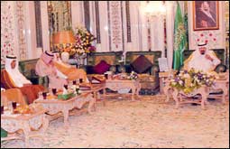 * مكة المكرمة - واس: استقبل خادم الحرمين الشريفين الملك عبدالله بن عبدالعزيز آل سعود -حفظه الله- في قصر الصفا بمكة المكرمة قبل مغرب أمس أصحاب السمو الملكي الأمراء وأصحاب المعالي الوزراء وعددا من كبار المسؤولين. وقد تناول الجميع طعام الافطار على مائدة خادم الحرمين الشريفين.