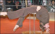* الرياض - حسين فقيه: * تصوير - عبد الرحيم نعيم بعروضه الممتعة والشيقة واصلت صالة عروض السيرك شمال الرياض جنوب هايبر بندة عروضها لليوم الثاني من أيام عيد الفطر المبارك. ويشير أسامة الشويعر المسؤول عن فعاليات السيرك جنوب هايبر بندة إلى السعادة التي لاحظوها على الجمهور والإقبال المتزايد على العروض المقدمة والمنوعة من حركات بهلوانية وصعبة وأداء أعضاء السيرك الصيني الذي أبدى الحضور تفاعلهم بما قدموه وعروض الحيوانات المدربة وأداء الرجل الآلي في تأدية الرقصات. كما لاحظ الجمهور التنظيم في عروض السيرك جنوب هايبر بندة وأشار الشويعر إلى أن متابعة أمين مدينة الرياض المستمرة كان له الأثر الكبير في نجاح الاحتفالات والعروض المقدمة كما يشير أحد أعضاء خدمة السيرك إلى تفاعل الجمهور بما قدموه مؤكداً أن الجمهور السعودي ذويق لما يقدم وقد لمسوا ذلك من خلال التفاعل الكبير والتشجيع لأعضاء فرق السيرك خلال تقديم العروض الخاصة بهم.