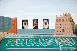 * أبها/عبدالله الهاجري: يعرض في أبها وفي حفل أهالي منطقة عسير بمناسبة زيارة خادم الحرمين الشريفين الملك عبدالله بن عبدالعزيز للمنطقة مساء اليوم الخميس أكبر صورة للمليك المفدى ولسمو ولي عهده الأمين صاحب السمو الملكي الأمير سلطان بن عبدالعزيز آل سعود - حفظهما الله- وذلك بمساحة إجمالية تصل إلى 252متراً. كما سيعرض كذلك أكبر علم سعودي وذلك على مساحة تبلغ 360 متراً وستكون هذه الصور واضحة للجميع في مدينة الأمير سلطان بن عبدالعزيز الرياضية بالمحالة بأبها. وأوضح مصمم ومنفذ الصور مدير مركز الملك فهد التشكيلي الفنان عبدالله شاهران أن هذه الصور تأتي كنوع من الحب والتقدير من فناني المنطقة بهذه الزيارة التاريخية التي تعكس مدى الحب والتقارب بين قادة البلاد وشعبها، وأوضح أن صورة الملك يبلغ ارتفاعها 18مترًا وعرضها 7 أمتار ويبلغ بذلك مساحتها 126 متراً، وكذلك حال المساحات تنطبق في صورة سمو ولي العهد - حفظهما الله-، وحول مساحات العلم أشار شاهر إلى أن العلم يأتي في مساحة 360 متراً بطول 20مترًا وعرض 16 متراً. وأضاف شاهر أنه تم عمل خلفية جديدة للمدرجات في الجهة المقابلة للمقصورة الملكية والتي تعبر عن جمال منطقة عسير وما تحمله المنطقة من مزج بين الحاضر والماضي حيث كانت المساحة السابقة 640 متراً مربعاً وبعد التعديل والإضافة أصبحت المساحة الإجمالية 720 متراً مربعاً. مؤكداً أن عمل هذه الصور والعلم والمجسمات لم تأخذ وقتاً أو جهداً كبيراً كونها في المليك المفدى وولي عهده الأمين.