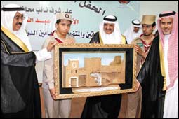 * حوطة سدير - ناصر العريج - تصوير - سعد العنزي: شهد وكيل محافظة المجمعة عبدالله الربيعة حفل جائزة جلاجل للتميز في عامها الثالث برعاية ودعم متواصل من الشيخ عبدالعزيز بن علي الشويعر وبحضور عدد من رؤساء المراكز بسدير التابعة لمحافظة المجمعة ورئيس مركز جلاجل بسدير الرئيس الفخري للجائزة المهندس سويد السويد ومديري التربية والتعليم في محافظة المجمعة للبنين والبنات وعدد من رجال الأعمال ومديري الدوائر الحكومية في المنطقة وجمع كبير من الحضور وأولياء الأمور حيث بدئ الحفل بآيات من القرآن الكريم تلاها أحمد التركي، بعد ذلك مسيرة الطلاب المتفوقين. بعدها قدم الكشافة لوحة إنشادية ترحيبية، بعدها ألقى راعي الجائزة الشيخ عبدالعزيز الشويعر كلمة شكر فيها الجميع على الحضور وتشريف الحفل وتحدث في ثناياها عن التميز والتفوق وهنأ الطلاب والطالبات على تفوقهم الدراسي. وقال الشويعر إن من لم يحالفه الحظ لتميز فذلك لا يعني الفشل. وأشار في كلمته عن الطموح وعلو الهمة وقوة العزيمة. وفي ختام كلمته قدم الشويعر شكره للقائمين على الحفل والتنظيم وشكر مدير تعليم البنين ومدير تعليم البنات في محافظة المجمعة لعرض التسهيلات والتوجيهات لحفل الجائزة. عقب ذلك أدى طلاب متوسطة وثانوية جلاجل نشيداً عن التفوق والتميز، بعد ذلك ألقى عبدالعزيز ابن أحمد العياضي مدير تعليم نجران سابقاً كلمة تحدث فيها عن التفوق وأهمية تشجيعه وأثنى العياضي على جائزة جلاجل للتميز وصاحب الجائزة وراعيها الشيخ عبدالعزيز العلي الشويعر وعما قدمه من أعمال ومشاريع وقال العياضي إن الموهوبين والمتفوقين ثروة الأمة الحقيقية. بعد ذلك قدمت الشاعرة (شمس الأصيل) قصيدة بالفصحى ألقاها محمد بن محمد الشويعر بعد ذلك قصيدة للشاعر ناصر بن عبدالله السعيد، ثم قصيدة للشاعر إبراهيم محمد الغنام ثم كلمة الطلاب المتفوقين ألقاها الطالب عبدالوهاب السلمان، ثم قصيدة للشاعر عبدالله المشاري. بعدها جاء دور التكريم حيث قام راعي الحفل عبدالله محمد الربيعة وكيل محافظة المجمعة، والمهندس سويد السويد رئيس مركز جلاجل، ومدير التعليم للبنات سليمان الدخيل، ومدير التعليم للبنين أحمد العقيل، ومدير التعليم السابق إبراهيم العمر وراعي الجائزة الشيخ عبدالعزيز الشويعر، بتكريم المتفوقين والمتفوقات للعام الدراسي 1425-1426هـ والعام الدراسي 1426-1427هـ. وقد قام مدير التعليم للبنين في محافظة المجمعة أحمد العقيل بتقديم درع للشيخ الشويعر بهذه المناسبة، كما قام مكتب الجزيرة بحوطة سدير بتقديم لوحة تذكارية تبين بعض المشاريع التي نفذها الشويعر في مدينة جلاجل بسدير، ودرع من الشاعر إبراهيم محمد الغنام. مشاهدات * شرطة حوطة سدير أسهمت في التنظيم داخل وخارج مقر الحفل بتواجد ومتابعة من ملازم أول عبدالمحسن العيبان وملازم أول حمود السهلي. * الطلاب عبدالله أحمد السويد ومحمد عبدالله المزروع وطارق محمد الأحيدب تناوبوا على تقديم فقرات الحفل وكانوا أكثر من رائعين في ذلك. * الكشافة أسهمت مساهمة فعَّالة في تنظيم الحفل وعبر المشاركة الكبيرة في الاستقبال بقيادة الأستاذين سعد ناصر المنصور وعلي السعداني وبإشراف من رئيس القسم الكشفي علي العلي. * أهالي جلاجل كانوا مثالاً للكرم الأصيل عبر حفاوة الاستقبال والترحاب بضيوف حفل الجائزة.