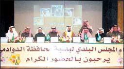 * الدوادمي - عبدالعزيز السبيل: بحضور محافظ الدوادمي الأستاذ محمد بن سعود الهلال عقد المجلس البلدي بالدوادمي لقاءه الأول مع المواطنين وذلك مساء يوم أمس الأول الاثنين بعد صلاة المغرب على مسرح إدارة التربية والتعليم بالدوادمي وبحضور عدد كبير من المسؤولين والمواطنين في المحافظة وأعضاء من المجلس البلدي بمحافظة عفيف وأعضاء من المجلس البلدي بساجر وأعضاء من المجلس البلدي بالبجادية وأعضاء من المجلس البلدي بنفي، وبدأ الحفل بالقرآن الكريم رتله الطالب عبدالرحمن مصطفى هوساوي بعد ذلك كلمة رئيس المجلس البلدي الأستاذ مشاري بن عبدالمحسن الرومي الذي بين خلالها دعم وحرص الدولة على صالح المواطنين، وأوضح أن الهدف من هذا اللقاء هو الاستماع إلى المواطنين والإجابة على استفساراتهم وتساؤلاتهم حول مسيرة المجلس البلدي لسنة كاملة واستقبال المقترحات والأفكار التي تخدم المجلس في النهوض بمهامه وتسهم في تطوير الخدمات والرقي بها، وأضاف أن اللقاء فرصة لنشر ثقافة الحوار الهادف البناء والتعود على ذلك فالوطن للجميع والمواطن وصل إلى مرحلة متقدمة تمكنه من المشاركة في رسم الخطط وصياغة القرارات، وهذا مما تهدف إليه الحكومة الرشيدة بقيادة خادم الحرمين الشريفين الملك عبدالله بن عبدالعزيز وسمو ولي عهده الأمين ودعم من صاحب السمو الملكي الأمير متعب بن عبدالعزيز ونائبه صاحب السمو الملكي الأمير منصور بن متعب، وأضاف: إننا نحرص على المشاركة الفاعلة ونعدكم بالبذل والعطاء لتحقيق الآمال في خدمة هذا الوطن. بعد ذلك قُدم عرض مرئي لأهم إنجازات المجلس البلدي والبلدية خلال فترة عمل المجلس.