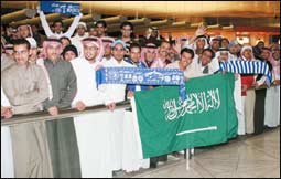 * تغطية - أحمد العجلان - تصوير - التهامي عبد الرحيم: استقبل الهلاليون في ساعات الصباح الأولى من يوم أمس الخميس بمطار الملك خالد الدولي بالرياض نجم فريقهم اللاعب الدولي محمد الشلهوب استقبال الأبطال، حيث كان في مقدمة مستبقليه رئيس الهلال الأمير محمد بن فيصل بن سعود، وعضو شرف النادي الأمير محمد بن خالد، وأعضاء مجلس الإدارة الدكتور إبراهيم القناص وعبد الرحمن البابطين وحسن القحطاني وفيصل السابر ومدير الفريق عادل البطي ومدير المركز الإعلامي على السمراني ومدير العلاقات العامة مشعل الربيعان، وعدد كبير من مشجعي الهلال ومحبي محمد الشلهوب يُقدر عددهم بأكثر من سبعة آلاف مشجع اكتظت بهم صالة المطار، وحظي الشلهوب بتعاطف كبير من الجماهير الزرقاء التي رددت اسمه كثيراً قبل وأثناء وصوله وكذلك بعد مغادرته المطار، وقد طلب رجال الأمن في المطار من رئيس الهلال والشلهوب مغادرة المطار من البوابة الخلفية تحاشياً لتدافع الجماهير نحوهما لا سيما وأن أعداد الجماهير الكبيرة من الصعب على رجال الأمن السيطرة عليها. وكان سمو رئيس الهلال قد عانق الشلهوب كثيراً واحتضنه فور وصوله في منظر مؤثر، الاستقبال حظي بتغطية إعلامية واسعة حيث حضر عدد كبير من المصوِّرين، وكذلك كاميرا القناة الرياضية قناة أوربيت الرياضية التي تواجدت مع اللاعب منذ مغادرته من الرياض إلى أن عاد إليها ومعه المذيع طارق الحماد. مدير فريق الهلال يقول: الهلال عظيم بجماهيره ورجاله أشاد مدير فريق الهلال الأستاذ عادل البطي برئيس الهلال وأعضاء الإدارة وجماهير الزعيم الذين حضروا لاستقبال النجم الكبير محمد الشلهوب، وقال: بالفعل هذا هو الهلال العظيم بجماهيره الرائعة الوفية التي مسحت كل آثار خسارة محمد للقب أفضل لاعب آسيوي بحضورها ودعمها له، وقال: إن ذلك هو معدن الهلاليين وديدنهم دائماً وأبداً. وأكد البطي أنه واثق تمام الثقة من أن محمد قد تجاوز الجائزة بكل آثارها، وأنه سيكون في قمة حضوره مع الهلال في قادم المنافسات.