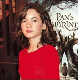 الممثلة الإسبانية لفانا باكورو تقف أمام بوستر كبير لفيلمها (متاهة المقلاة) أثناء عرضه الافتتاحي الأول في هوليود رويترز