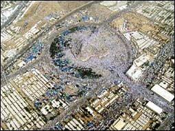 لا صوت إلا (لبيك اللهم لبيك) ولا لون إلا الأبيض الناصع ولا مساواة في الوجود إلا في هذا المشهد الكوني حيث ذابت الفوارق والأعراق والألوان. تحت هذا (اليقين السماوي).. (الكل مساواة محققة.. لا فرق بين الجار والجار) الأكتاف تشكل السوية في الرمل.. والركض.. والسجود..