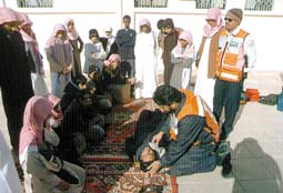 كما قدم الهلال الأحمر سيارة إسعاف لتدريب الطلبة على الإسعافات الأولية بإشراف من مدير الهلال الأحمر خالد شلال السويلم والمسعف عبدالله المقحم.