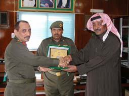 كرمت قيادة منطقة الطائف العسكرية الزميل عليان صالح آل سعدان على جهوده الإعلامية لتغطية مشاركات القوات المسلحة في موسم حج هذا العام، وقد استقبل اللواء الركن عبدالباري بن أحمد الحفظي قائد منطقة الطائف العسكرية بمكتبه الزميل آل سعدان وقدم له درعاً تقديراً على جهوده بحضور مدير الشؤون العامة بقيادة المنطقة المقدم عبدالله بن زويد المطيري.