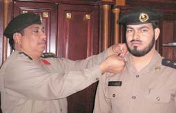 بناء على الأمر السامي الكريم، قام مدير شرطة محافظة رفحاء العقيد سالم بن ناصر المرعي بتقليد الملازم أول محمد بن عواد المظيبري رئيس قسم الأسلحة والتفجيرات بشرطة رفحاء رتبته الجديدة وذلك بعد صدور الموافقة على ترقيته من رتبة ملازم إلى رتبة ملازم أول. وقد بارك العقيد المرعي هذه الترقية متمنياً له التوفيق والسداد من أجل خدمة الدين ثم المليك والوطن, كما أعرب الملازم أول المظيبري عن سعادته بهذه المكرمة الملكية الكريمة وعن عميق شكره وتقديره لمقام خادم الحرمين الشريفين وولي عهده الأمين ولسمو وزير الداخلية ولسمو نائبه وسمو مساعد وزير الداخلية للشؤون الأمنية وسمو أمير المنطقة الشمالية على ما يلقاه قطاع الأمن من اهتمام ومتابعة ودعم مستمر.. كما عبّر الملازم المظيبري عن شكره الجزيل لمدير الأمن العام ولمدير شرطة المنطقة ولمدير شرطة رفحاء على دعمهم وتوجيههم المستمر له ولجميع زملائه في العمل سائلاً المولى سبحانه وتعالى أن يكون عند حسن الظن به واعداً ببذل المزيد من الجهود لخدمة هذا الدين ثم المليك والوطن وأن تكون هذه الترقية حافزاً له لتقديم مزيداً من الجهد والعطاء لخدمة هذا الوطن الغالي علينا جميعاً.