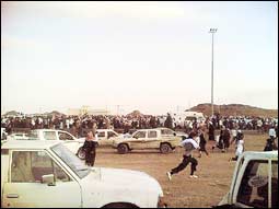 وشهدت نقطة النهاية تجمهراً كبيراً من المشاركين لمعرفة النتائج مما ألزم رجال الأمن للتدخل واستخدام القوة لإبعاد الجميع من الموقع والسيطرة على الفوضى.