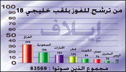 كما جرت العادة في وسائل الإعلام المرئية والمقروءة والمسموعة عند تغطية الأحداث الكبرى، أقامت جريدة إيلاف الإلكترونية استفتاءً واسع النطاق شارك فيه أكثر من 80 ألف شخص حول ترشيح المنتخب الذي سيفوز بدورة خليجي 18 في أبو ظبي من خلال المستوى الفني للفرق الثمان المشاركة فيها.