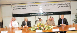 عينت الشركة السعودية لإعادة التأمين (إعادة) البنك السعودي الهولندي مستشاراً مالياً، ومديراً للاكتتاب ولعملية طرح أسهم الشركة للتداول في سوق الأسهم السعودية، حيث تم التوقيع أمس الأول بالرياض، ووقع الاتفاقية كل من السيد موسى الربيعان، رئيس لجنة مؤسسي الشركة والسيد عبدالإله آل الشيخ مدير عام المجموعة المصرفية للشركات بالبنك، وذلك بحضور كل من السيد نهاد طالب الرئيس التنفيذي للشركة والسيد توم ليند مدير التمويل المركب بالبنك، والسيد خالد المعمر رئيس شعبة مصرفية الشركات، والسيد مارك هانسن، مدير الاستشارات المالية للشركات بالبنك. وموظفي إدارة الاستشارات المالية للشركات بالبنك. ومن المتوقع أن يبدأ الاكتتاب في الربع الثاني من هذا العام، وتوقيت الاكتتاب يعتمد على الموافقات المطلوبة من الجهات الرسمية.