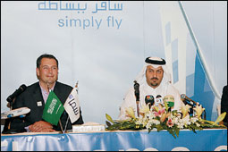وبالنسبة لمشكلة الطيارين أكد سموه على أنه تم التغلب عليها بالتعاقد مع عددٍ من الطيارين الأجانب المهرة، مشيراً إلى أنه لم يتم استقطاب أي كوادر من الخطوط السعودية التي قال: إننا ننظر إليها كشريك لنا في هذا المجال.